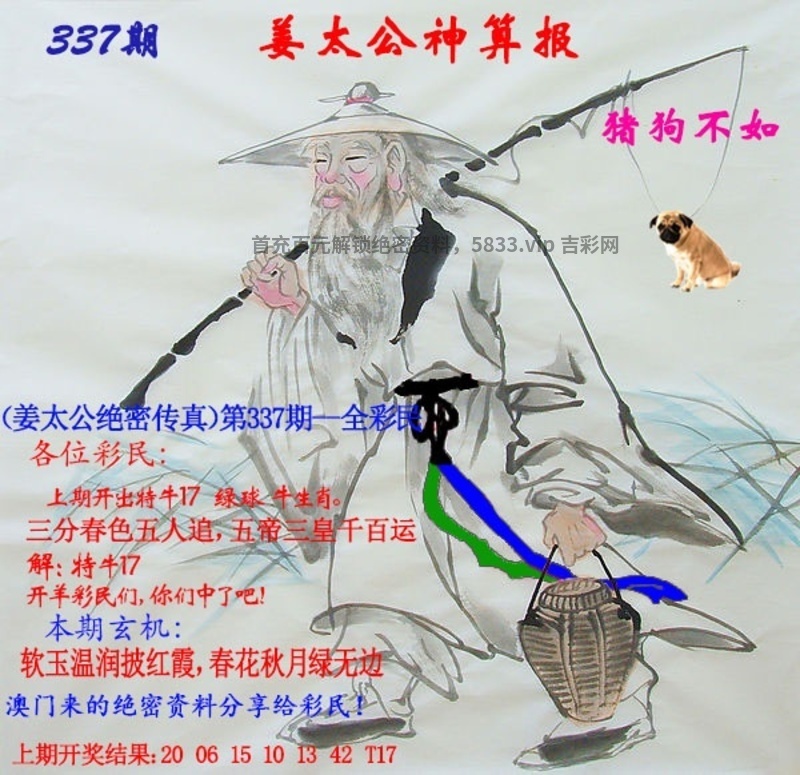 | 【姜太公玄机诗】开:鸡09 337期:上期开出特牛17绿球牛生肖。三分春色五人追,五帝三皇千百运 【解】:软玉温润披红霞,春花秋月绿无边 【综合七肖】牛鸡羊猪龙鼠虎 【综合五肖】牛鸡羊猪龙 【综合三肖】牛鸡羊 【主攻特码】17.41.09.33.11.35.07.43.02.14 ![]() |